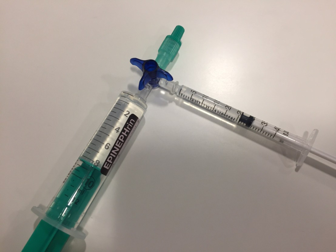 Die auch heute in der Notfallmedizin leider oft noch allzu häufig anzutreffende Methode der Medikamentenverabreichung „eine Ampulle passt schon“ hat weder etwas bei den Erwachsenen und schon gar nichts bei Kindernotfällen zu suchen! Hier sollte man sich vorher Gedanken darüber machen wie man geringe Dosierungen und Volumina verabreichen kann. Auf jeden Fall sollte sich in der Spritze welche an den Patienten angeschlossen wird immer nur das befinden was auch verabreicht werden soll. Viel zu groß ist sonst die Gefahr dass man aus Versehen die komplette Spritze in den Patienten entleert und somit eine Überdosierung herbeiführt. Am besten eignen sich Insulin- oder Heparinspritzen um kleinste Mengen genau zu dosieren. Man bedenke dass man z. B. bei einem 5 kg schweren Kind bei einer Reanimation 0,05 mg Adrenalin benötigt. Das wären 0,5 ml einer 1:10000 Lösung. Das Abziehen einer Lösung aus einer 10ml oder 20ml Spritze in eine Insulin- oder Heparinspritze mittels Dreiwegehahn scheint sinnvoll (Achtung: diese Aufziehvorrichtung niemals an den Patienten anschließen!). Immer nur soviel in eine an den Patienten geführte Spritze aufziehen wie wirklich mit einer Dosis verabreicht werden soll.